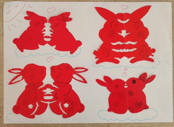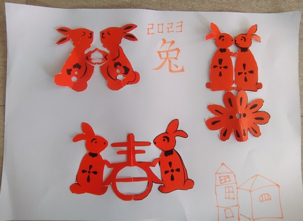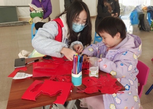 活动伊始,志愿者向小朋友们简要介绍了中国民间剪纸的起源和发展、剪纸的特征和种类,以及所需的工具、材料和方法等。在志愿者的讲解下,孩子们围绕“虎走留福,兔来送春”主题,跃跃欲试。
