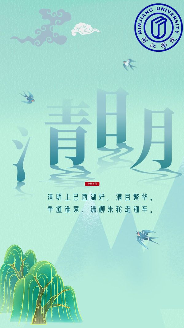 清明,是中国二十四节气中的第五个节气,也是诸多节气中唯一一个与传统节日“清明节”重合的节气。“万物生长此时,皆清洁而明净”,所以叫做“清明”。清明有三候:一候桐始华;二候田鼠化为鴽;三候虹始见。清明节兼具自然与人文两大内涵,既是象征物候变化的节气,也是缅怀先人、戴柳踏青的节时。节气的清明,是春耕春种的大好时机。节日的清明,是寄放情感的传统日子。值此清明时节,搜书吧 社团管理中心组织同学们共同创作了“我们的节日·清明”系列海报,为这个特殊的节气又增添了一丝艺术气息。