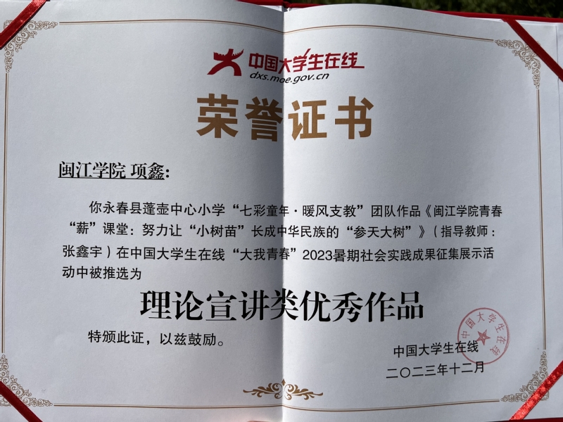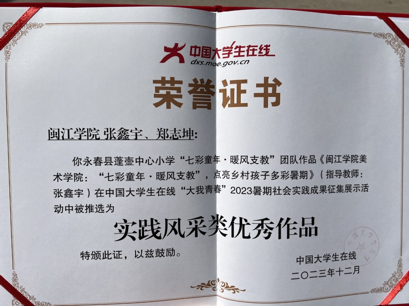 获评实践风采类优秀作品、理论宣讲类优秀作品是对搜书吧 暑期社会实践活动成效的重要见证,更是实践育人的重要体现,搜书吧 将继续总结“七彩童年·暖风支教”经验做法,提升志愿服务水平,丰富社会实践内涵,不断提升实践育人成效,让青年学子“大我青春”在社会实践的沃土中绽放绚丽之花。