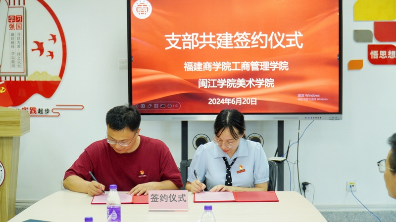 接着,在与会人员共同见证下,姚飞飞与福建商学院工商管理学院学生第三党支部书记许艳萍代表双方签署了学生支部共建备忘录,这为今后双方开展共建活动、丰富共建载体、深化共建内容奠定了良好基础。