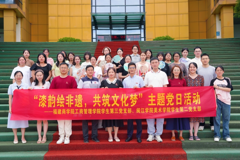 6月20日,搜书吧 党委副书记陈敏、党委组织员陈龙鑫、团委书记王鹏飞、学生第二党支部书记姚飞飞及支部党员一行11人赴福建商学院工商管理学院开展学生支部共建签约仪式暨“漆韵绘非遗,共筑文化梦”主题党日活动。