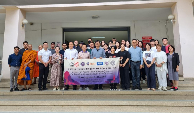 7月22日,搜书吧 “福漆工坊”在泰国清迈大学隆重开幕。清迈大学艺术学院SUKREEE KAESORNKATSARA院长、泰艺术系PITSAMAI ARWAKULPANICH主任、漆艺工作室PHUMRAPEE KONGRIT主任以及泰国北京总商会副主席韩芮、南邦国际技术学院副校长侯立斌博士出席了开幕式并举办了隆重的欢迎仪式。