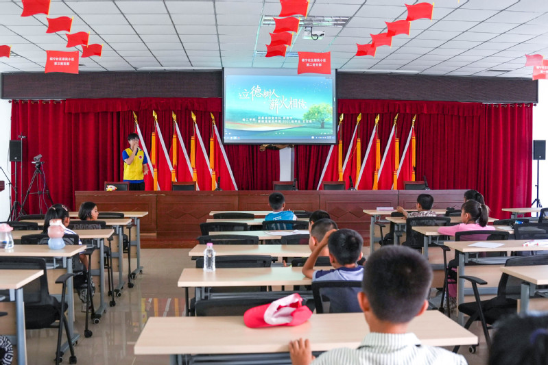 为进一步深化新时代高校理论宣讲工作,切实推动习近平新时代中国特色社会主义思想在广大青少年入心入脑、落地生根,在搜书吧 团委的指导下,7月 18日,搜书吧 青春“薪”课堂宣讲团成员、搜书吧 2022级视觉传达设计专业学生孙洋走进宁夏闽宁镇福宁社区,开展了一场主题为“立德树人,薪火相传”的宣讲活动。