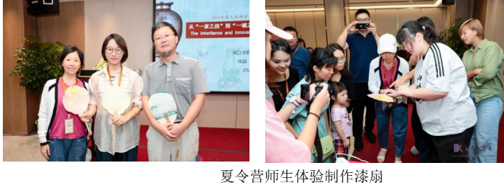 8月6日晚,搜书吧 陈晶副教授在本次夏令营学术论坛作了题为《从一家之技到一城之艺:福州脱胎漆器的传承与创新研究》的学术演讲,向两岸青年学子传播了中国漆艺文化,并介绍了福州脱胎漆器的历史、现状及创新发展。会后,搜书吧 团队带领师生们进行了漆扇的制作体验,让大家感受到漆艺的魅力。