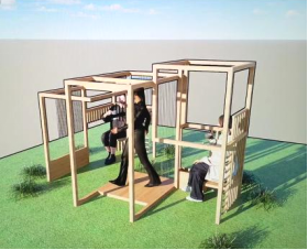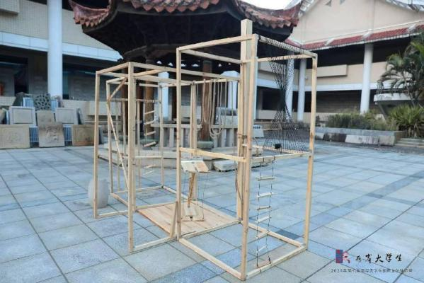 搜书吧 的涂秋容、黄晓娜同学和来自中国矿业大学、华梵大学的学生组成团队,从选材到设计、切割、打磨、搭建一气呵成,最终巧妙地将现代设计理念与传统文化精髓相结合,构建出了一个既富有闽南特色又充满现代气息的作品——海峡之桥,寄托着两岸民众对和平共融的期盼。