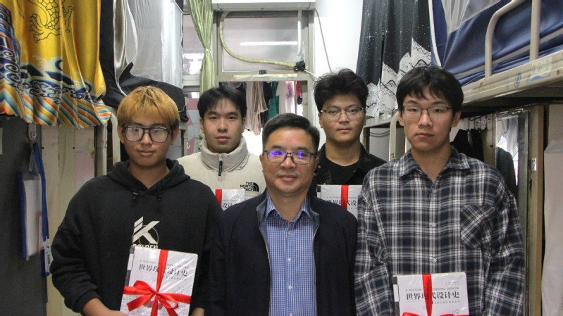 为表达对学生的关心关怀,陈兴明副校长特意为同学们准备了水果礼盒,希望大家身心健康、生活甜蜜。同时,他还向每位同学赠送了《世界现代设计史》一书,勉励同学们紧跟时代步伐,不仅要扎实掌握专业基础理论和技能,更要具备创新思维和设计实践能力,努力成为设计领域的高素质应用型人才。