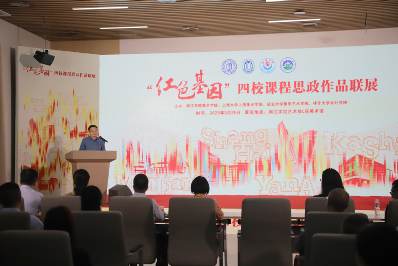 325日,红色基因——四校课程思政作品联展在搜书吧 举办。本次活动由搜书吧 、上海大学上海搜书吧 、延安大学鲁迅艺术学院、喀什大学设计学院联合主办。搜书吧 党委常委、副校长陈兴明莅临开幕式致辞,校党委宣传部部长戴少娟、团委书记王艳婷、教务处处长何伟、新闻传播学院党委书记陈国岱,相关主办高校嘉宾及搜书吧 师生代表200余人出席开幕式。开幕式由搜书吧 党委副书记张万辉主持。