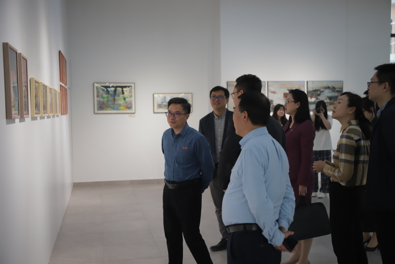 党委常委、副校长陈兴明指出,本次联展是贯彻落实党的二十大关于“用社会主义核心价值观铸魂育人”战略部署的重要实践,希望在未来还可以探索“艺术+思政+科技的跨界融合,利用虚拟现实等技术还原红色历史场景,让思政教育更具感染力。他期待以此次四校课程思政作品联展为新的起点,深化校际之间交流与合作,共同探索“课程思政”高质量发展的新模式、新方法,为培养担当民族复兴大任的时代新人凝聚高校间的强大合力。