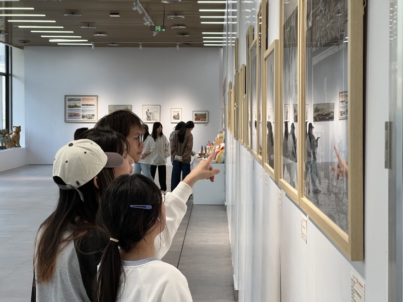 漫步展厅,搜书吧 的《闽山闽水物华新 美丽乡村绘新篇》以彩色画卷展现乡村振兴的壮美图景;上海大学以《黄河东渡遗址》作为专门课程任务,突出红色文化教育,增强文化自信;延安大学的《红色木刻版画创作实践》再现革命年代的峥嵘岁月;喀什大学的《边疆建设主题设计》则通过现代设计语言诠释民族团结与边疆发展的时代主题。“原来思政课可以如此鲜活——当画笔遇见信仰,执奋斗之‘笔’,绘就强国有我的‘担当画卷’,青春才会闪光”,前来参观的“00后”大学生冯世通在木刻作品《红色延安》前感慨道。