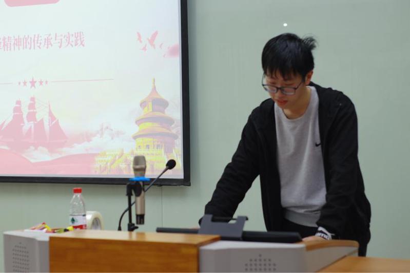 陈诚谦同学分享自己参加志愿服务的经历,他用实际行动告诉大家,雷锋精神就在我们身边的每一件小事,一次帮助,一次公益活动,这些都是对雷锋精神的传承与践行。