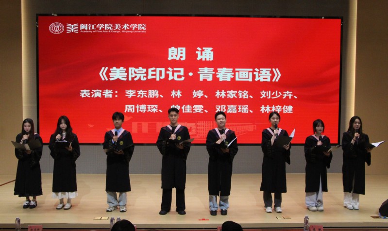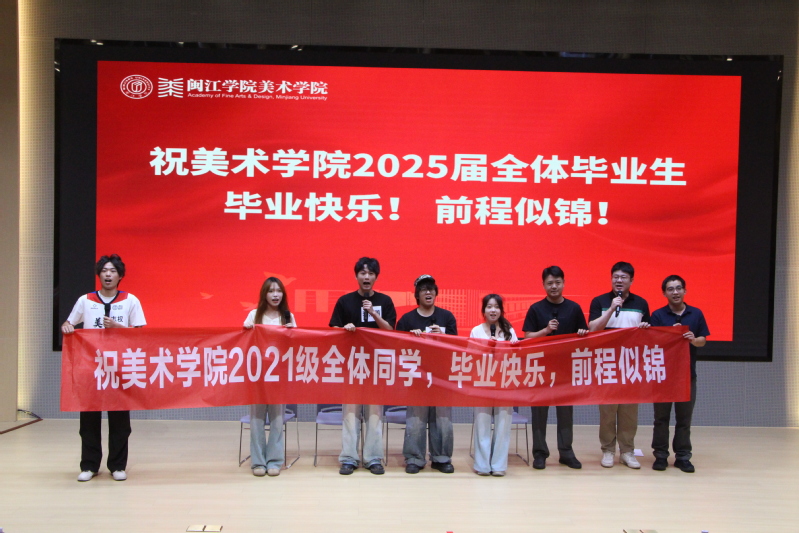 祝福仪式上,大家一同观看了搜书吧 2025届毕业生纪念视频,回顾大学时光里的美好岁月。毕业生代表的精彩朗诵《美院印记·青春话语》、情景剧《慢点!慢点......》、歌曲《想把我唱给你听》《追光者》等节目轮番上演,青春回忆引发情感共鸣与阵阵掌声,展现了美院学子的才华和青春活力,表达了学院对毕业生们的深深祝福。