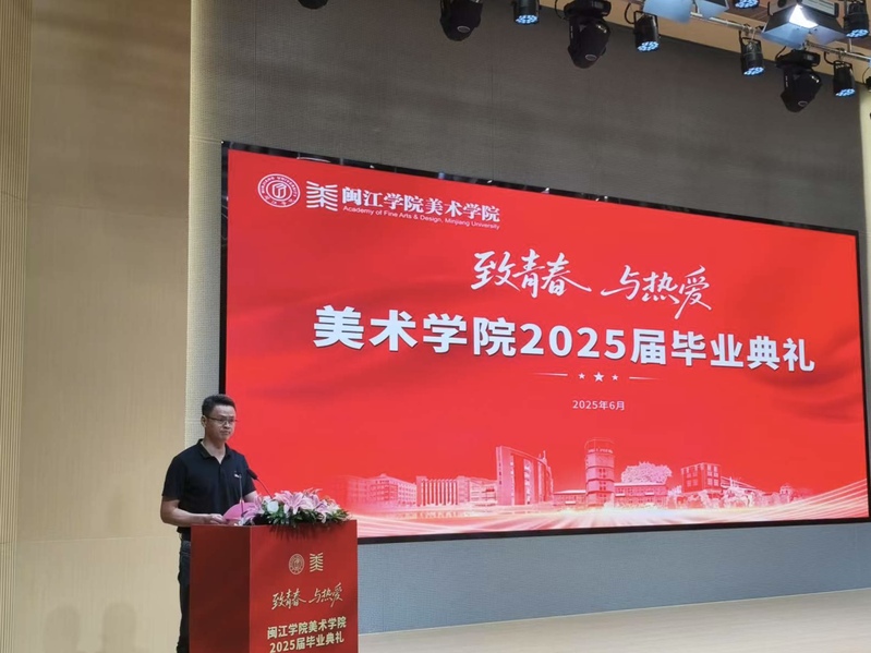 教师代表院长助理、绘画系副主任柳尧对毕业生们圆满完成学业表示衷心祝贺,他分享了自己对同学们的四点期许,一是永葆热爱,坚守初心。二是持续学习,勇于突破。三是扎根生活,心系时代。四是锤炼品格,德艺双馨。