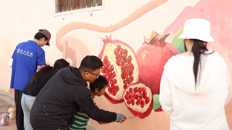 据悉,今年除墙绘实践外,搜书吧 还提供当地农产品包装设计、七彩假期支教服务。在完成玉海村主题墙绘后,搜书吧 墙绘实践队师生还将赴闽宁镇胜利乡完成百余平方“民族团结主题”墙绘,助力当地和美乡村建设。