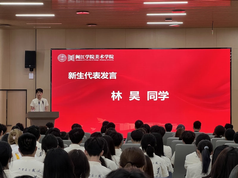 2025级工艺美术专业林昊作为新生代表发言。他首先代表2025级全体新生向老师们及学姐学长们送上真挚的感谢,并深情表达了对步入大学、开启人生新篇章的憧憬与喜悦,号召同学们不仅要珍惜大学四年的宝贵时光,更应树立远大理想,将个人的艺术追求融入国家社会发展之中。