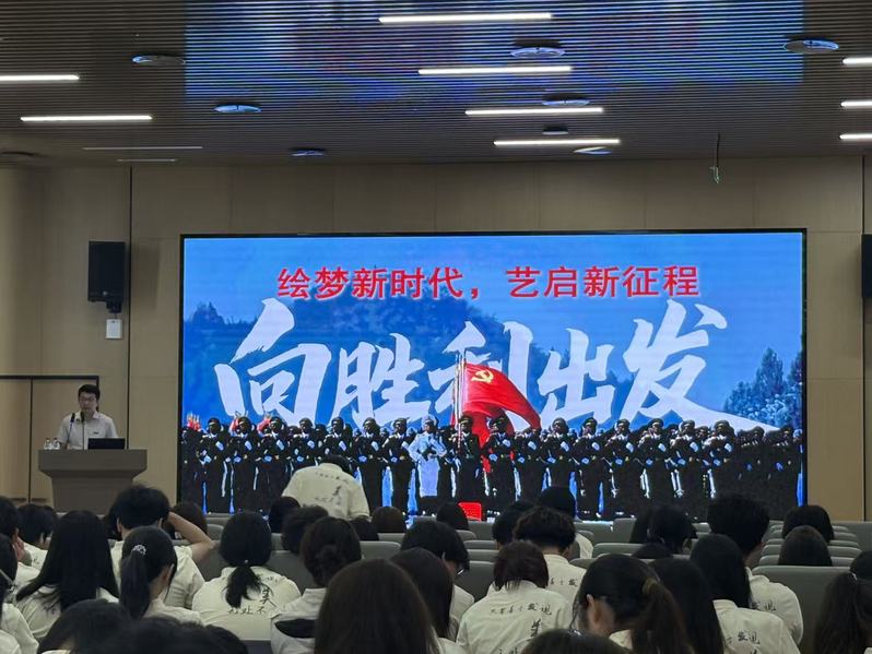 张万辉书记以《绘梦新时代,艺启新征程》为主题,为2025级新生带来一堂振奋人心的开学思政第一课。他首先通过解读“九三阅兵”展现的民族复兴伟力,带领同学们回眸国家发展的沧桑巨变,从抗战装备对比到现代“东风快递”等硬核科技,生动阐释了“自强才能自立”的历史真谛。同时,他在课上特别强调艺术学子应与时代精神共鸣,将阅兵中体现的忠诚使命、精益求精、创新协作等品质融入专业学习,在筑牢信仰根基的同时,练就扎实基本功,广泛涉猎人文知识,践行“德艺双馨”的立身准则。最后,他号召新生们积极投身乡村振兴、文化传播等社会实践,以画笔为媒,既做艺术追梦人,更当时代答卷人。