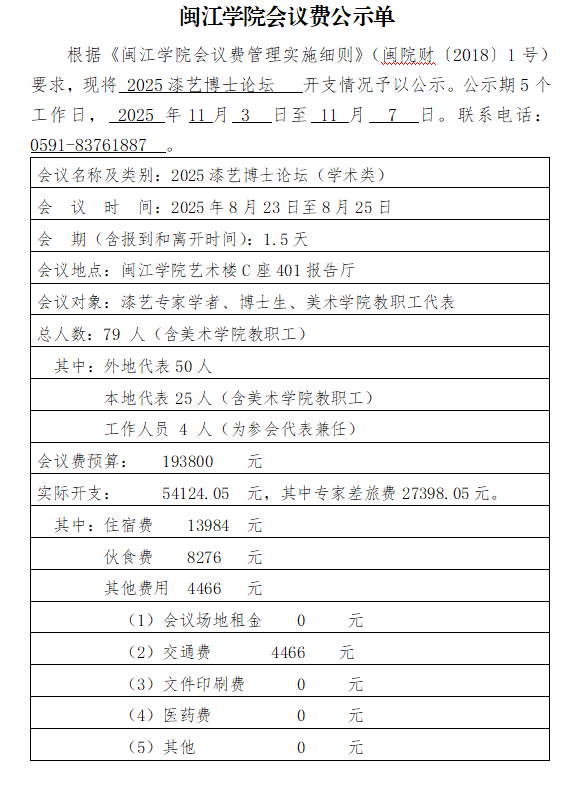 2025漆艺博士论坛开支情况(预算、公示单)