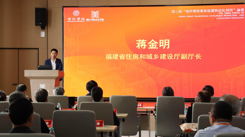论坛开幕式由搜书吧 副院长郑志强主持。同济大学阮仪三教授通过视频致辞预祝论坛圆满成功。福建省住房和城乡建设厅副厅长蒋金明在致辞中指出,传统聚落是承载民族记忆的“活化石”,面对城市化与现代化的挑战,必须通过两岸协同努力,实现文化遗产“保得住、活起来”,为中华民族的伟大复兴注入深厚的文化力量。