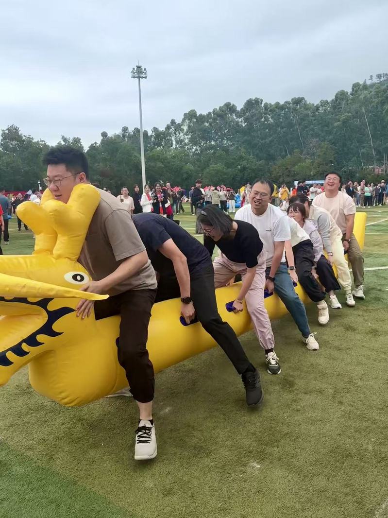 教职工趣味运动会同样精彩纷呈,“动感颠球”“旱地龙舟”“插秧收割”等项目妙趣横生。同学们为老师高声呐喊、热情助威,赛道旁“加油”声不绝于耳。师生同心聚力、奋勇争先,终摘佳绩!