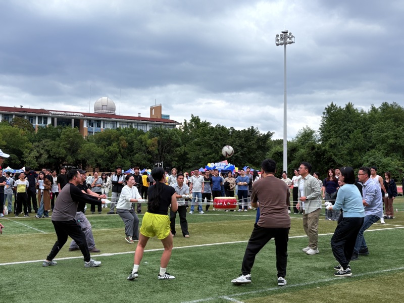 教职工趣味运动会同样精彩纷呈,“动感颠球”“旱地龙舟”“插秧收割”等项目妙趣横生。同学们为老师高声呐喊、热情助威,赛道旁“加油”声不绝于耳。师生同心聚力、奋勇争先,终摘佳绩!