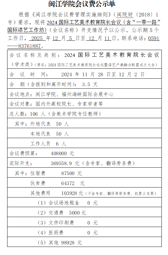 2024国际工艺美术教育院长会议(含“一带一路”国际漆艺工作坊)(预算、公示单)